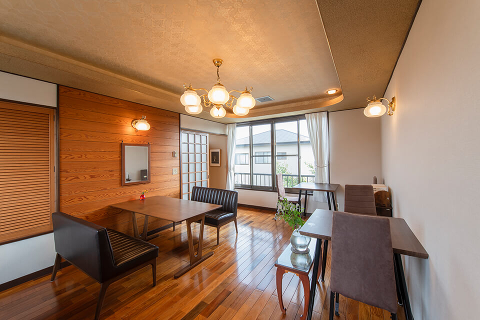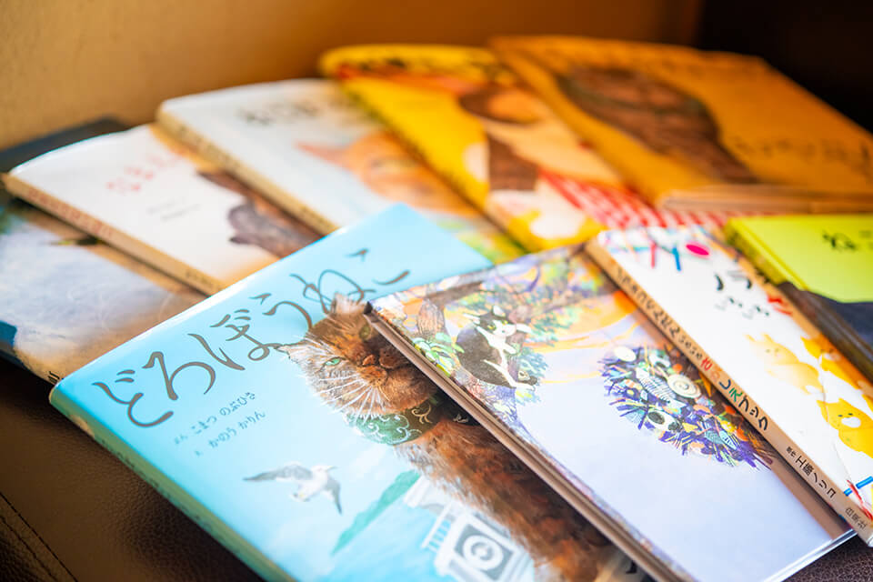 階段をあがると、どこか懐かしさが漂う開放的な空間が広がる。喫茶室と呼ばれるその空間の一角には、小さなお子様連れでもゆったりとくつろげる個室が用意されており、絵本やぬいぐるみが並べられている。